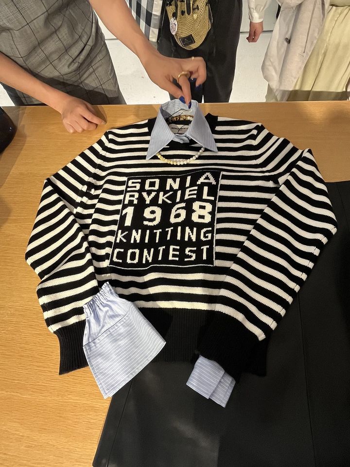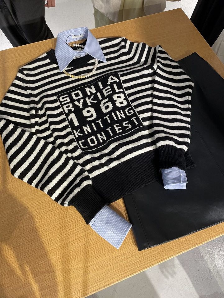 ニット¥74,800(SONIA RYKIEL/ソニア リキエル)カラー¥30,800(CATHERINE OSTI/キャサリン オスティ)カフス¥28,600(CATHERINE OSTI/キャサリン オスティ)ネックレス¥30,800(MIHOKO&SAKAI/ミホコ&サカイ)