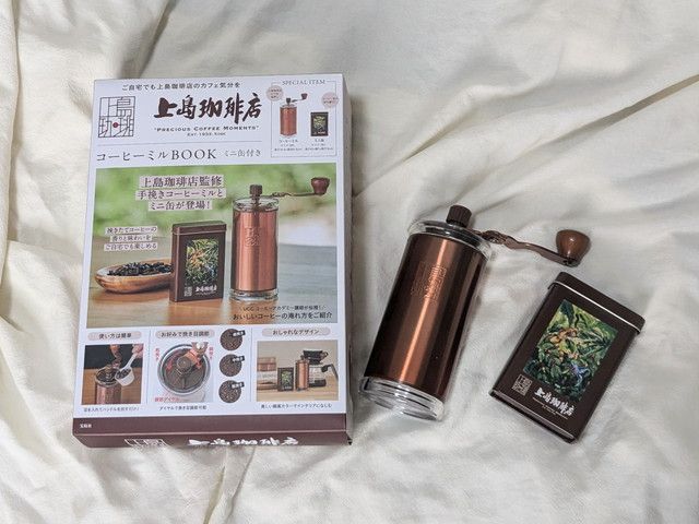 本誌限定アイテムは、オリジナルデザインのコーヒーミルとミニ缶。コーヒー好き&上島珈琲店のファンの方は絶対チェックしたい1冊となっています。