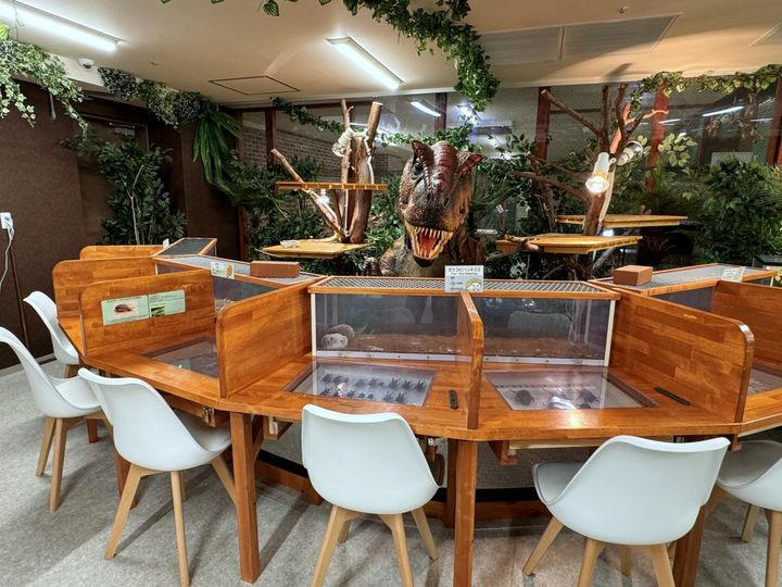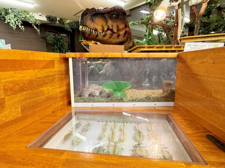 大きな恐竜にぎろりと睨みつけられ、卓上には昆虫の標本、目の前にはお団子状になって眠るスナネズミたち……これでは気になってしまって、仕事も勉強もはかどりそうもありません。