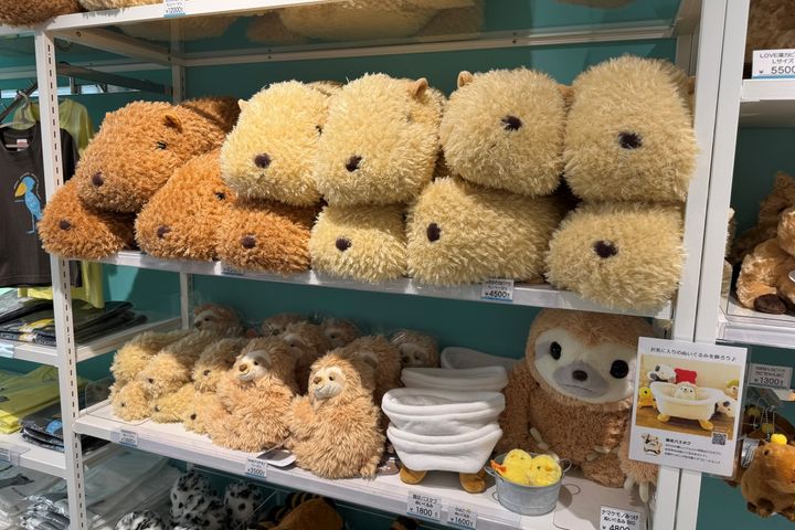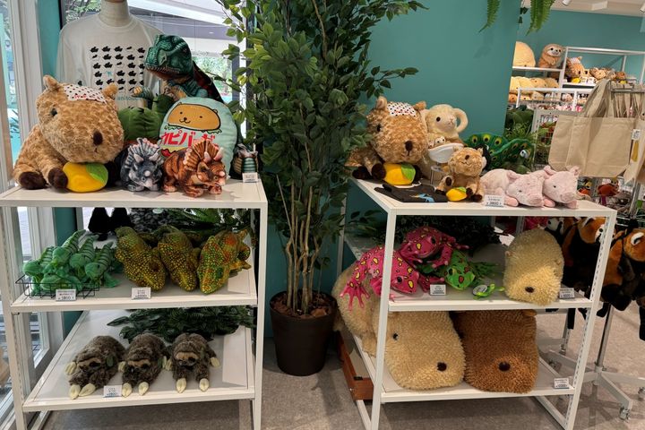 人気のぬいぐるみをはじめ、キーホルダーやTシャツ、トートバッグなどオリジナルアイテムが充実しています。