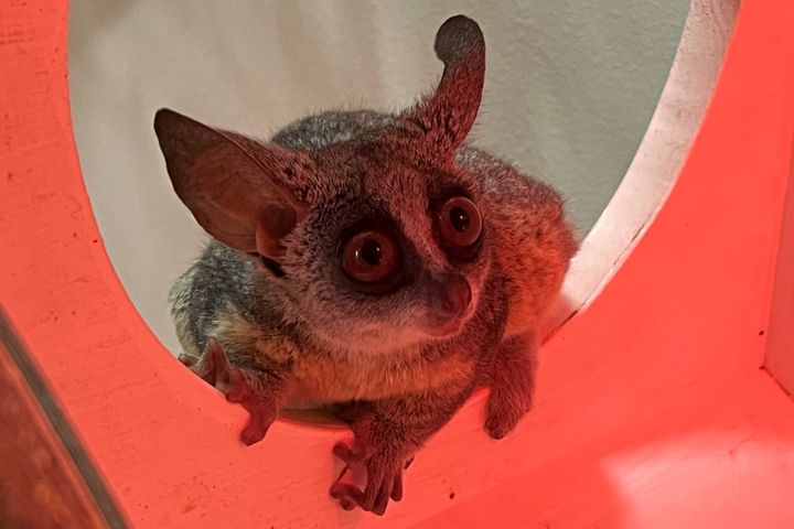 取材時はアフリカに生息する動物で、尻尾や丸い目がキュートなショウガラゴが元気いっぱいにケージ内を飛び回っていました。