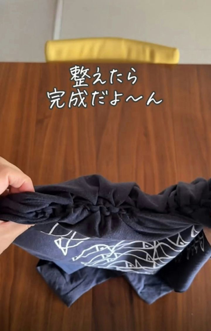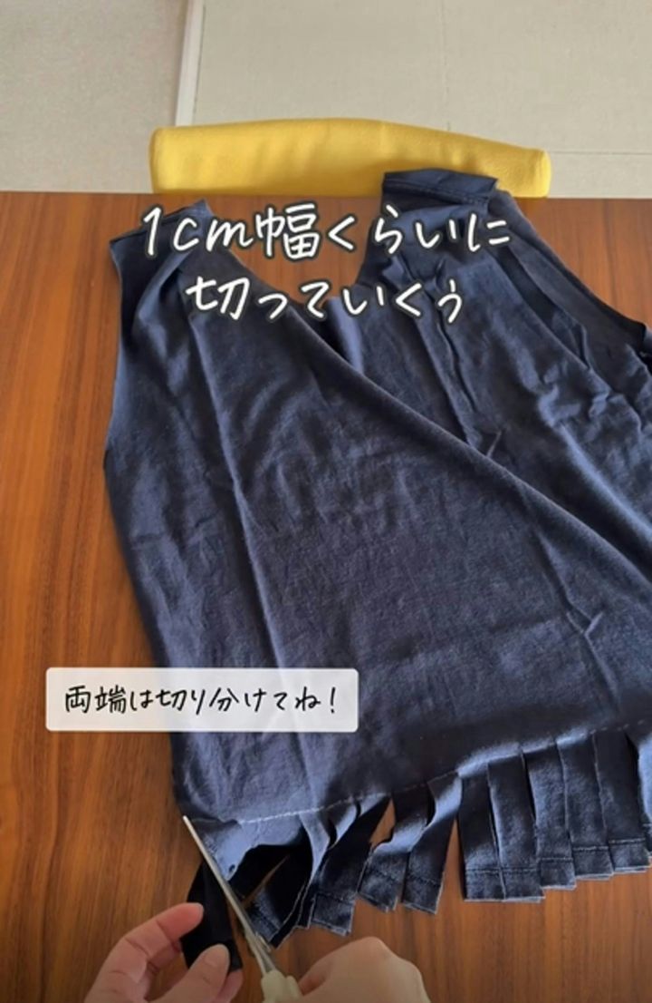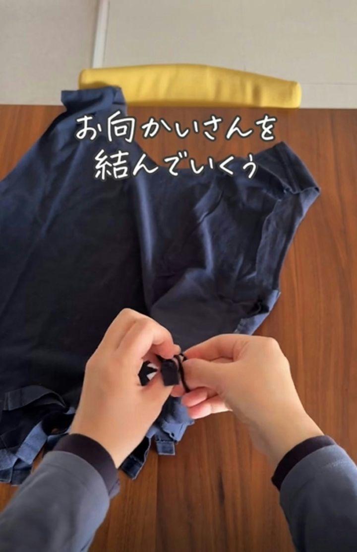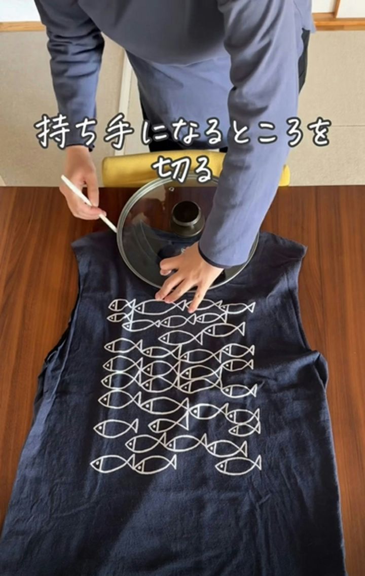 3. 針と糸不要、子どもでも簡単作業【ライフハック】Tシャツで作るエコバッグ