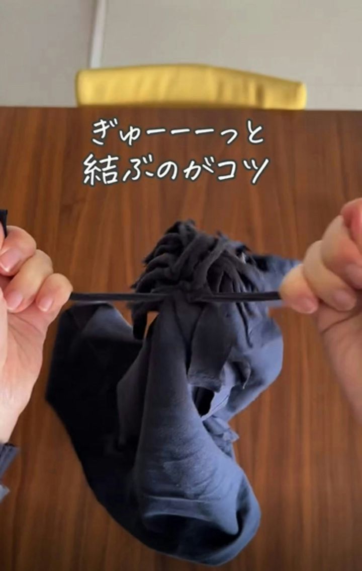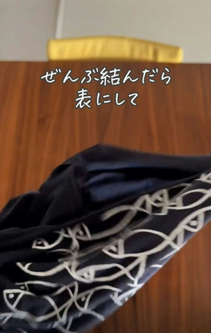 すべて結び終えたら、結び目を中に入れるようにして、ひっくり返して表にします。