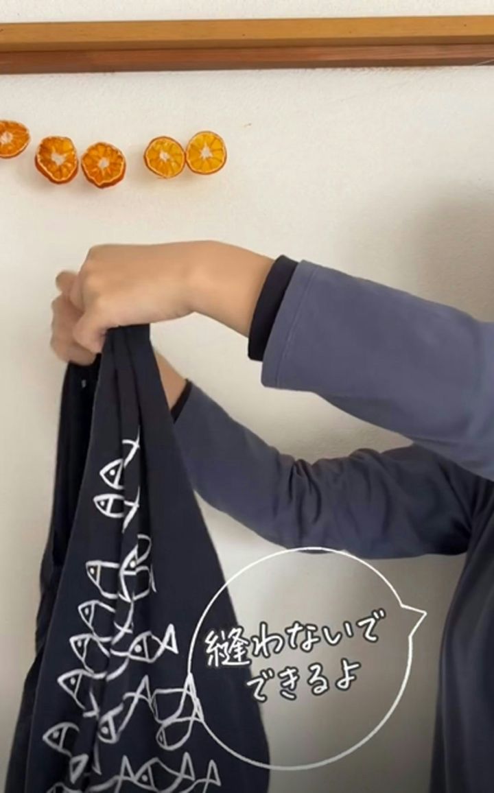針と糸不要、子どもでも簡単作業【ライフハック】Tシャツで作るエコバッグ