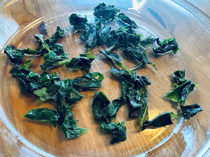 わたしは耐熱皿に広げて、電子レンジにかけました。