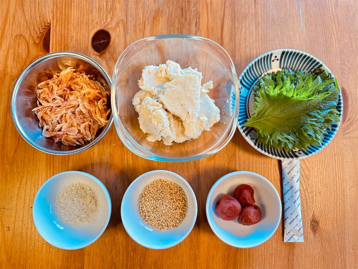 青じそ、桜エビ、ゴマ、梅干しが入っているので、和の香りのトップバッターが勢揃いしている感がありますよね。