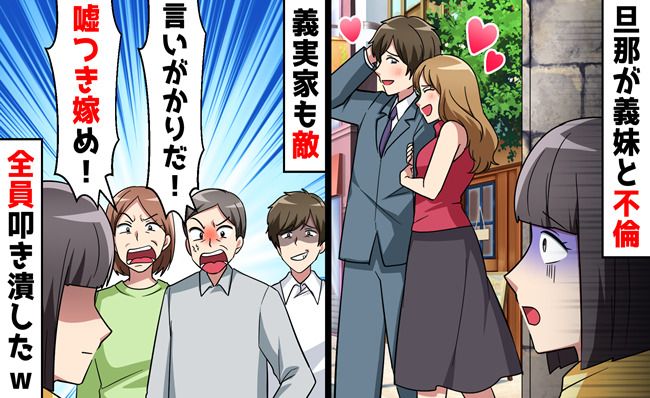 義妹と不倫した最低夫をかばう義父母「嘘つき嫁め!」浮気の証拠を突きつけた結果!?不倫夫の末路