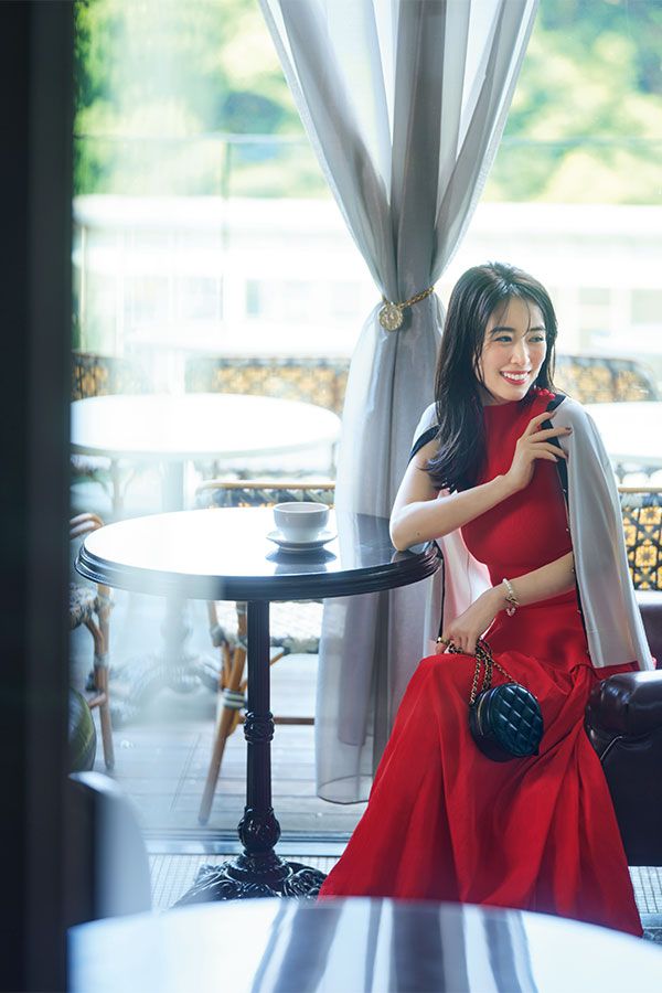 3. 真っ赤なワンピを着こなすなら…すっきりシルエット&リッチ見えな小物をオン
