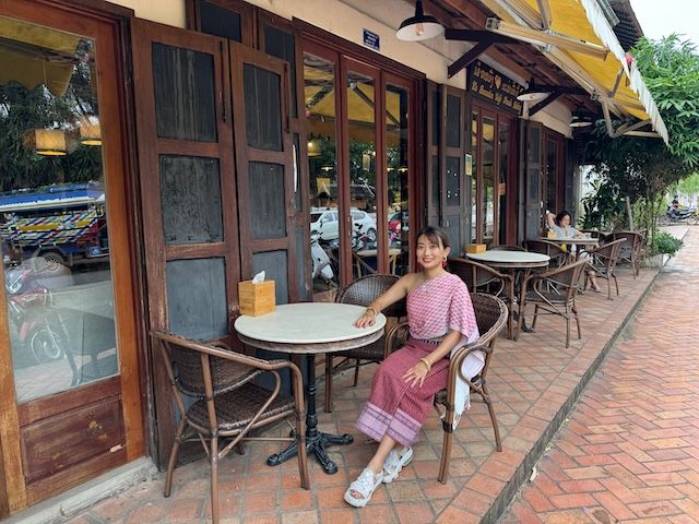 こちらも同じく、フレンチシックな気分に浸れるカフェです。晴れているときは、オープンテラスになっています。街を歩いていて、東南アジアにいるのにかかわらず、ここのシーンを切り取るだけで、まるでパリにいるような写真を撮ることができます。伝統服を着て写真を撮ると、ミスマッチ具合が最高で、ラオスらしい記念になります。こちらでは、フランスをテーマにしておりおいしいパンやコーヒーやお食事を楽しむことができるので、街歩きの休憩にもおすすめです。