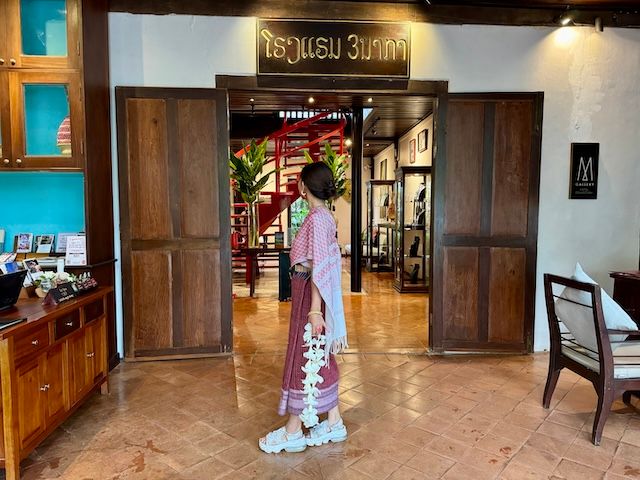 こちらのエントランスは宿泊していなくても、ゲストが映らなければ撮影することが可能です。エントランスも素敵なのですが、道路を挟んだラウンジの内装も可愛すぎる! 路面に面したホテルの前では、「ルアンパバーンで一番古い(らしい)アイススタンド」があり、購入すれば中でいただくことができます。