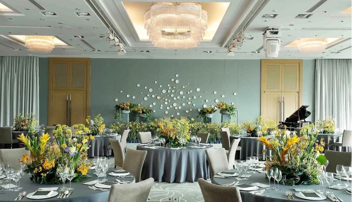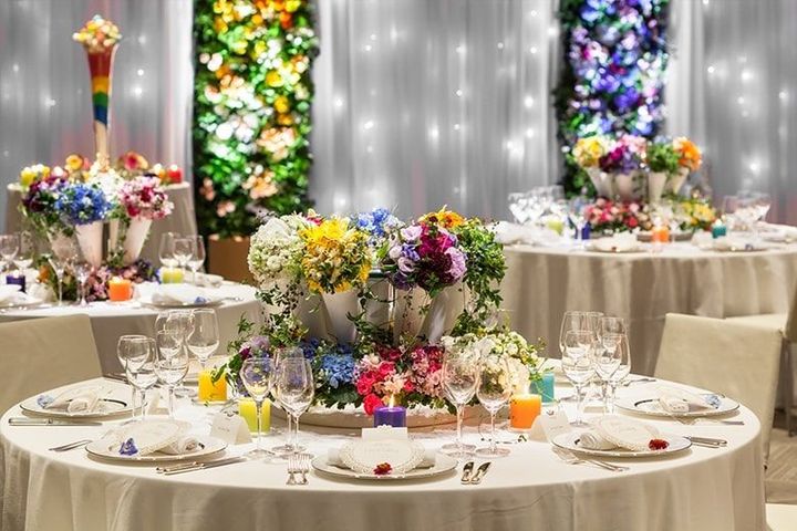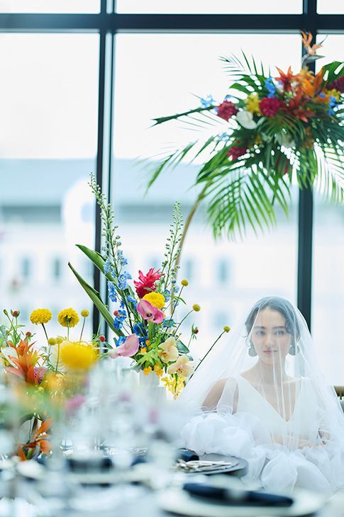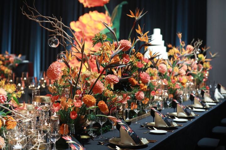 ラグジュアリーホテルからピックアップ! 披露宴会場をヴィヴィッド&ビタミンカラーの花々で彩ったアレンジを紹介。