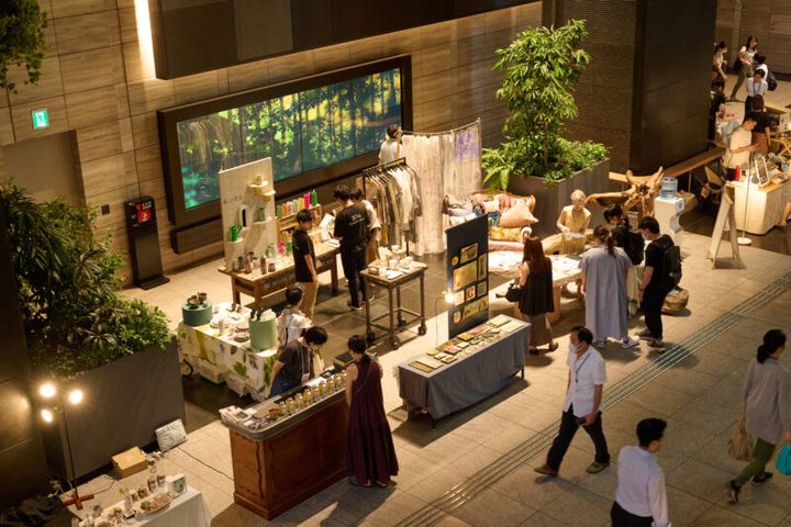 大手町タワーの地下から地上へと続く、都市の洗練さと自然の息吹が融合した空間で、40店舗ものショップが集合するマーケットイベント。自分自身と向き合う時間を通じて、周囲との関わり方や日々の選択肢までも豊かに変えていくことを目指し、単なる環境配慮にとどまらないエシカルの新しい捉え方を体験できる場にもなっています。