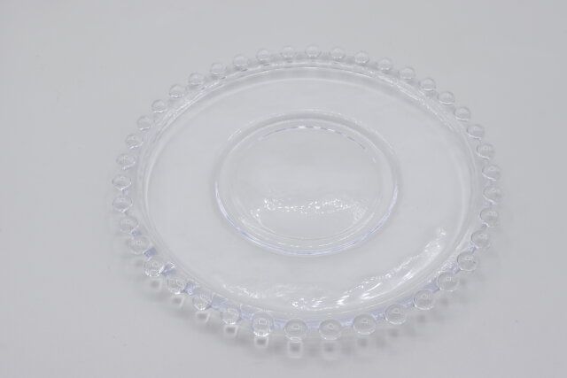 『ガラスプレート(ドット、約20cm)』は、大きさが約20cmのガラスプレート。お値段は220円(税込)です。