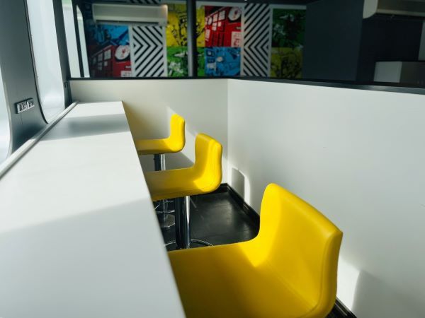 初めて乗船した際には、かっこいいスペースだね!と壁紙をバックに息子たちがポーズを決めて写真撮りをした桟敷席スペース。子供は椅子よりも横になれるこちらがお気に入りです。