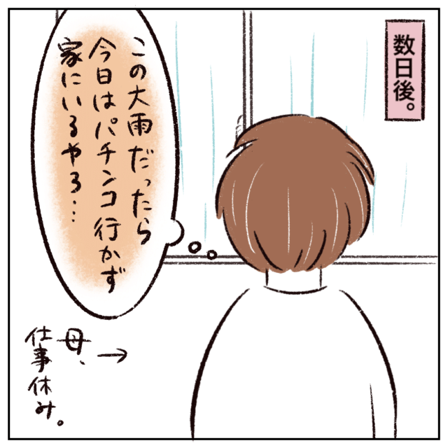 数日後のこと。仕事が休みだったお母さんは「この大雨だったら、今日はパチンコ行かず家にいるやろ・・」とあたりをつけました。