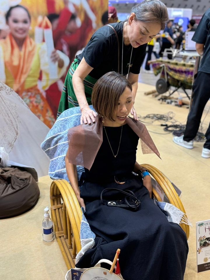 10分間マッサージを発見!予約をして次のブースへ向かいます。