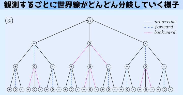 1つの粒子の存在できる場所が10カ所存在するときには、観測によって10の世界線に分岐するわけです。