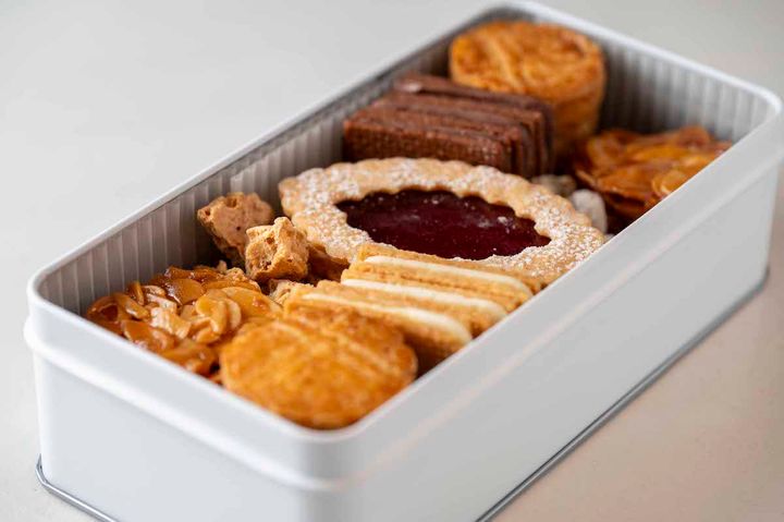 7種類の焼き菓子を詰め合わせた「クッキー缶」4400円は、LANIGIROの看板商品のひとつ。赤い果実のジャムをのせたサブレリンツァやラムの芳醇な香りが楽しめるガレットブルトンヌなど、素材から焼き具合にまでこだわったお菓子はどれもひとつずつ大切に味わいたくなる仕上がりです。