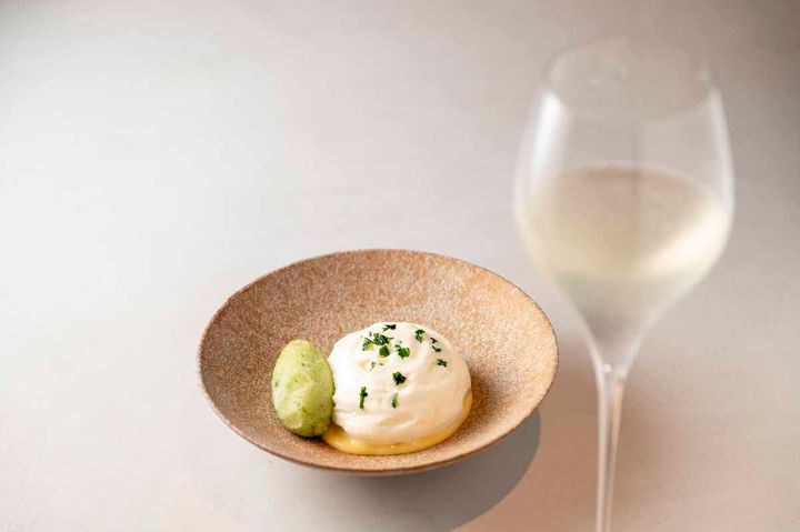 ドリンクはすべてソムリエの今野雄貴氏が、ひと皿ごとに合わせたお酒を用意してくれます。今回ご紹介のペアリングドリンクはアルコールがメインですが、お酒が苦手な方はノンアルコールでも用意してくれるので、今野さんに相談してみましょう。