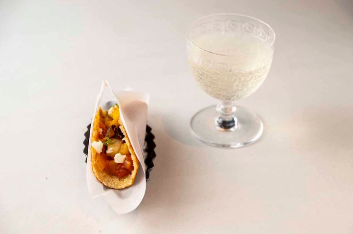 メインに合わせるのはノンアルコールの「フルーツトマトのレモングラスのドリンク」。桃と相性抜群のトマトが味わいに深みを与えて、桃を引き立ててくれるるそう。レモングラスのほのかに甘く清涼感のある香りの余韻もいい感じ。