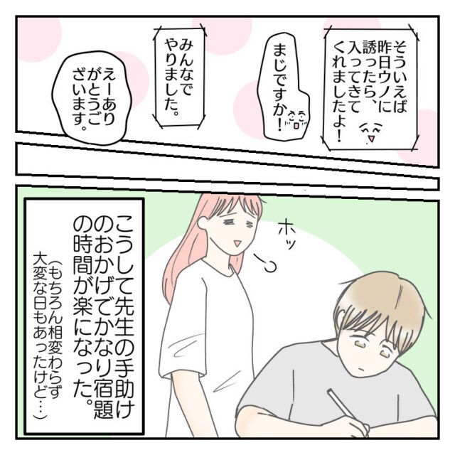 まっちくんの気持ちをちゃんと聞いてくれる素敵な先生!小さな成功体験を積み重ねて自信に繋がるのですね!