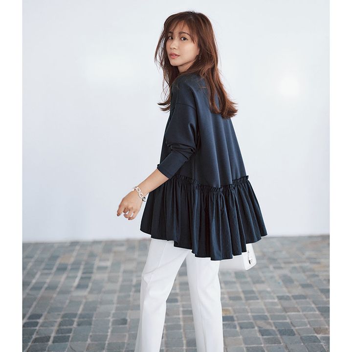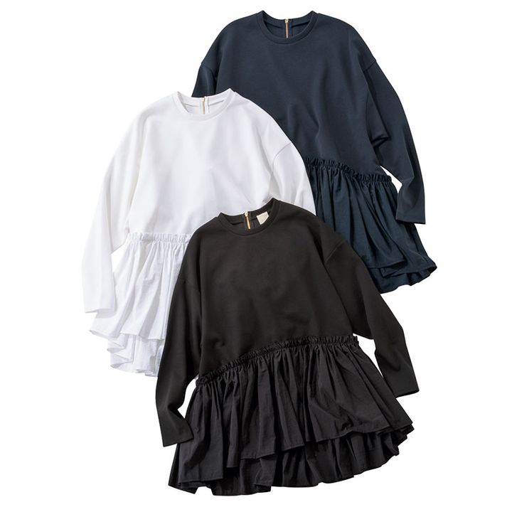 THREE SQUARE ぺプラムコンビプルオーバー ネイビー、ホワイト、ブラック Price_¥17,600