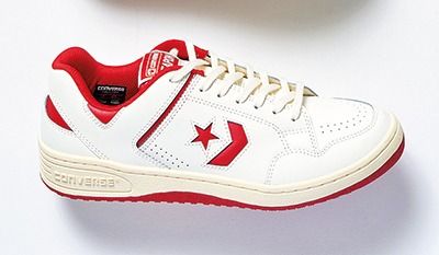 赤×白スニーカー/コンバース(コンバースインフォメーションセンター) 80年代の名作バッシュ「WEAPON」をブラッシュアップしたモデル。白と赤のコントラストをミッドソールの生成り色が上手く中和。