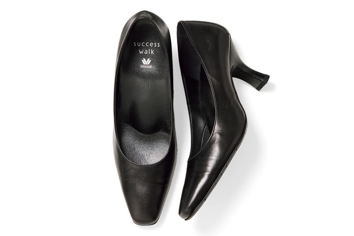 長年にわたり女性の動きについて研究してきたワコールが、その技術を足に応用し、日本人女性に合わせた木型を開発。美ST世代にとって冠婚葬祭やビジネスシーン、学校行事などに一番活躍するベーシックな黒の7cmヒールが人気No.1! サクセスウォーク パンプス ¥19,80(ワコール)
