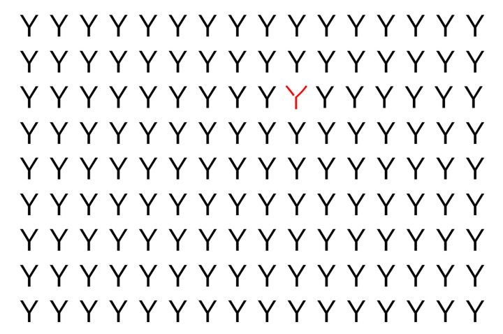 画像に並んだたくさんの「Y」というアルファベット。 その数144個なのですが・・・、実はその中に1つ違う文字が紛れ込んでいます!!