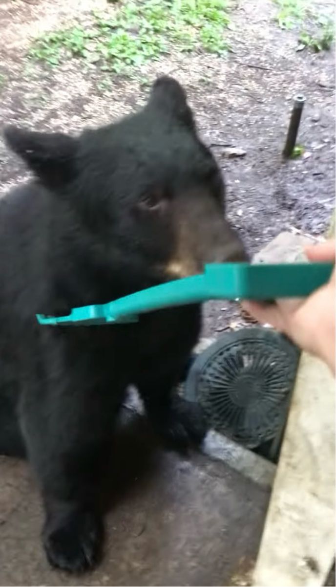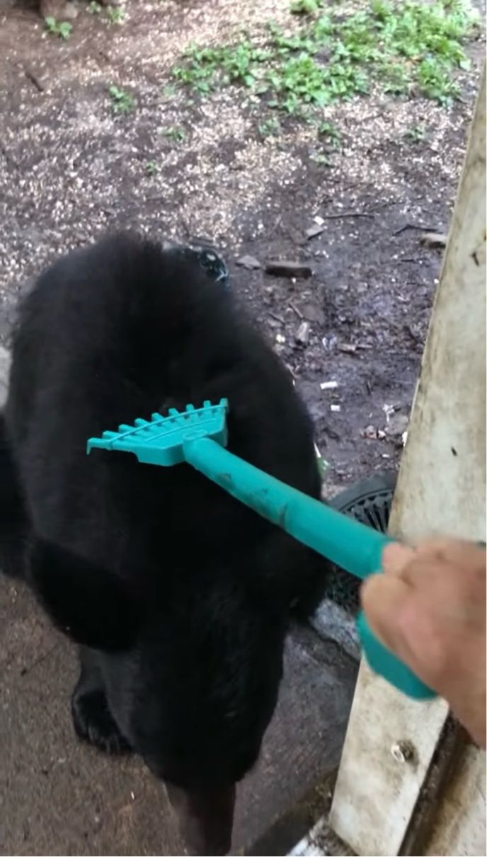 3. 熊手でクマの体をカキカキ!ブラッシングにクマもウットリ?【アメリカ・動画】