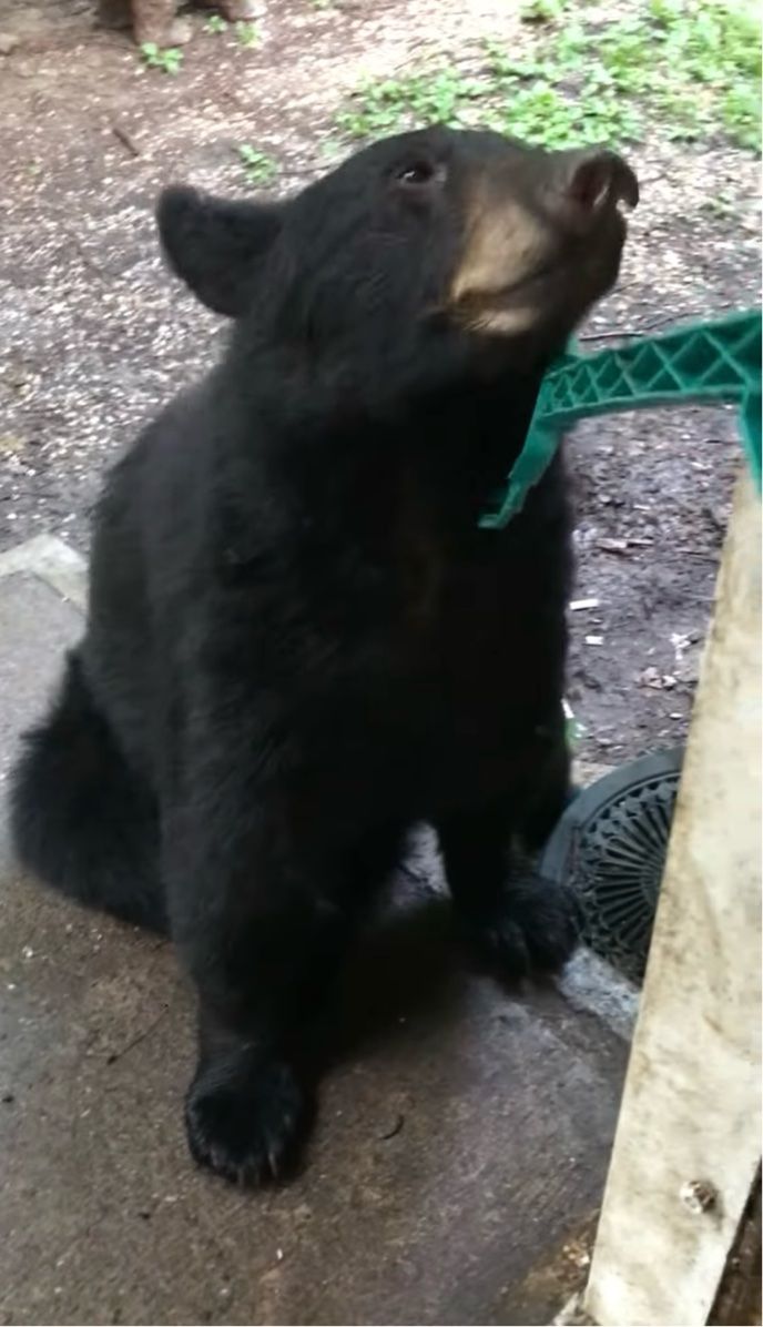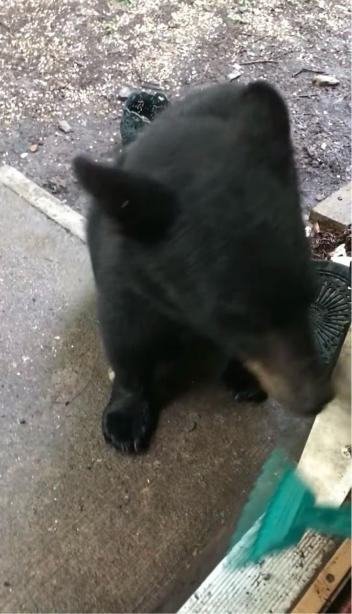 それは・・・、なんとクマでした! どうやら、玄関先までやって来てしまったようです。