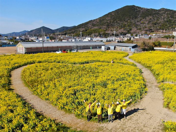 2006年から遊休農地を活用して菜の花を植え、持続可能な花のまちづくりを進めています。2024年9月現在、市内20か所、計約4万㎡に100万本の菜の花とヒマワリが植えられています。この取り組みは景観形成、観光振興、資源循環、農地健全化、次世代への橋渡しを目的としています。
