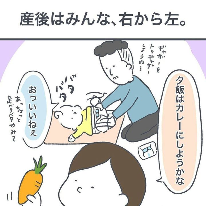 産後の育児に奮闘する、ぬぴ(@poko_nupi)さん夫妻。赤ちゃんのお世話をしながら何気ない会話をしているのですが、どうも話は右から左へ。育児にかかわる中で起こる「あるある」な瞬間を切り取ったお話、どうぞごらんください。