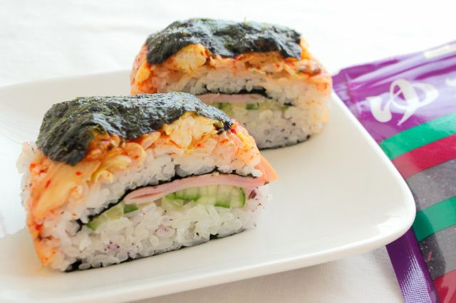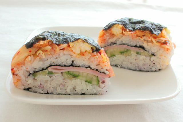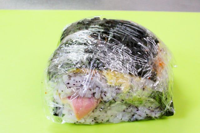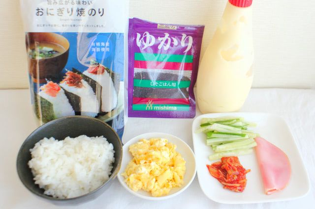 今回はレシピ通りに炒り卵&キムチ、ハム&きゅうりの具で作りましたが、残り物のおかずを使って作れるおにぎりなので中の具は、その都度ある具材を組み合わせて作れますよ。