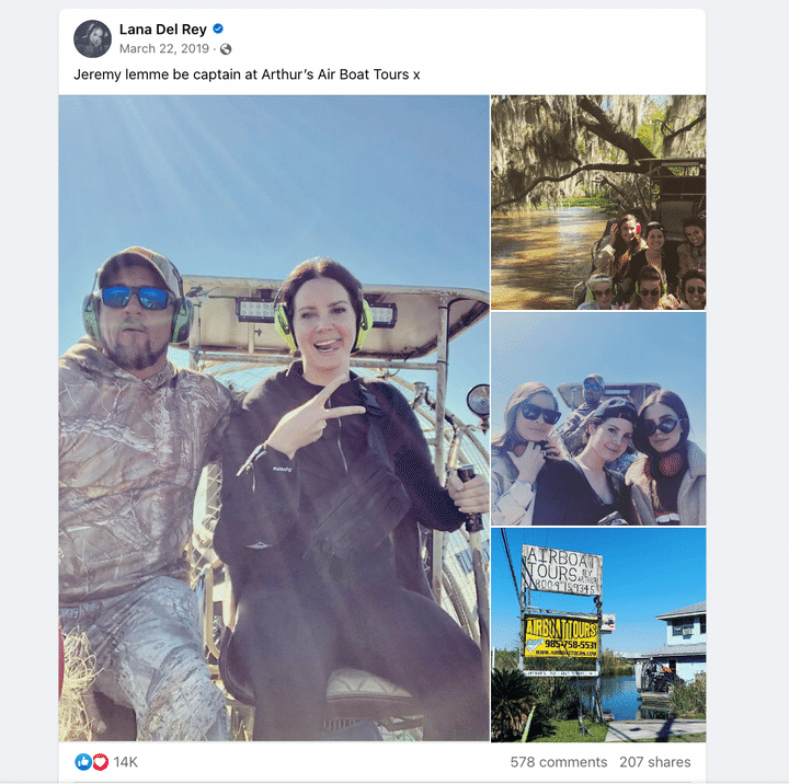 有名人のニュースを発信するPop Craveが、「ラナ・デル・レイがジェレミー・デュフレーヌという名前のワニのツアーガイドと交際しているらしい」と投稿。
