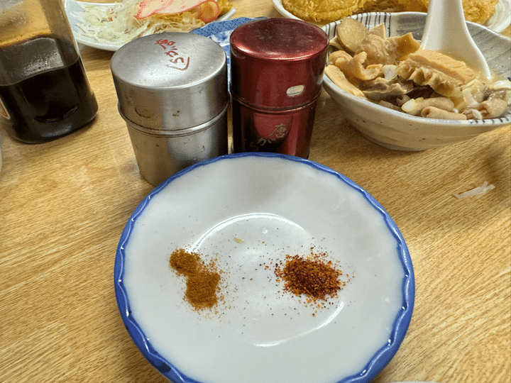 そして一番の驚きの味が七味・一味です。香りのいい七味と、切れのある辛さの一味。どの料理にかけても味が引き立つ魔法の粉です。