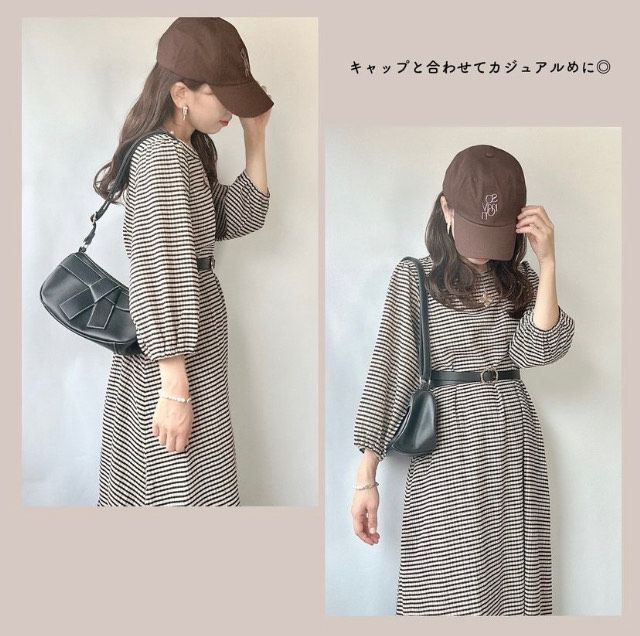 キレイめにコーディネートしがちなワンピースも、キャップ合わせでカジュアルも楽しめます。白のスニーカーで爽やかに。