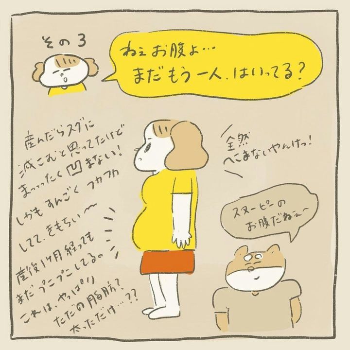 おなかに1人入っていたのだから、産後はちゃんとおなかがへこむと思っていた…。そう思う方も多いかもしれません。そんなことから始まり、産後は自分史上初めて味わう身体の変化と向き合うことになります。作者の伊藤ぽんぽこ(@ito_ponpoko)さんが体験した、産後のリアルをまとめて漫画化。ぜひごらんください。