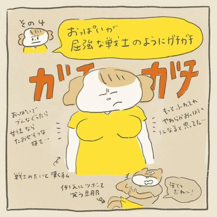 さりげない夫さんのツッコミでほのぼのした雰囲気ですが、夫も身体の変化には驚いたのかも。産後の心情が伝わってくるエピソードでした。