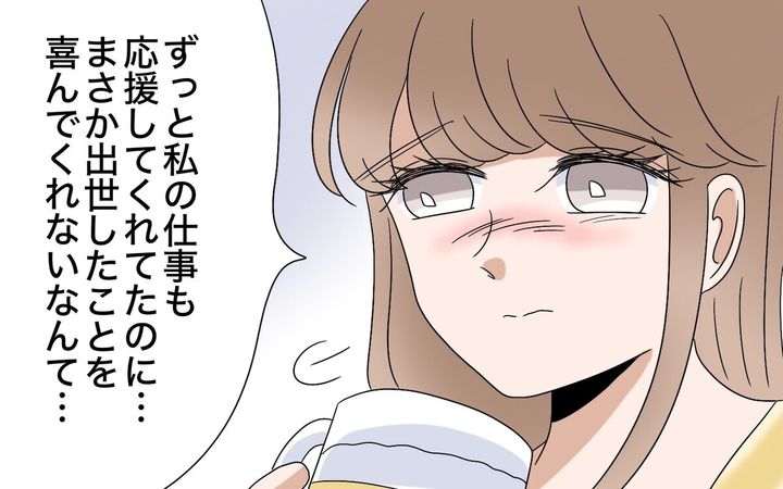 ・とことん嫌な男だな。昇進したと言った途端に態度が豹変。その後は何を言っても何をしても悪く取って嫌味と暴言。悪いことをした訳でもないのに、何でこんな扱いを受けて、そこまで気を遣ってやらなきゃならないの? 我慢する必要ある?一緒にいる意味ある? さっさと離れた方がいいと思うけどね。