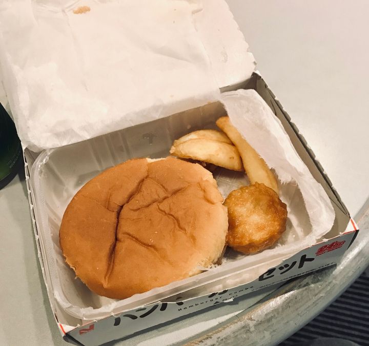 自販機ハンバーガー。パサパサだったけどこういうのが楽しい