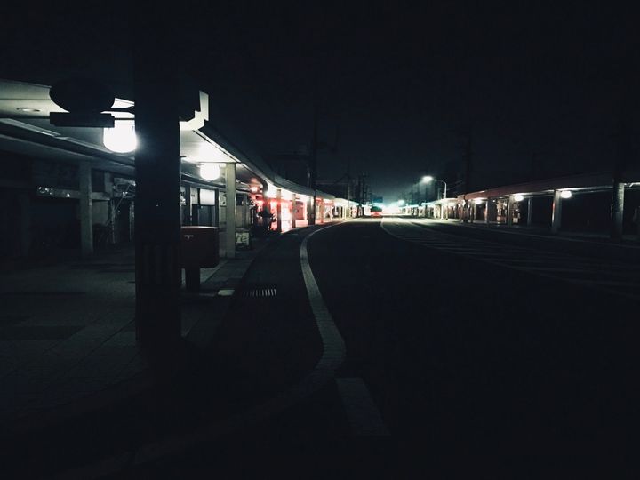 夜の商店街。誰もいない…。