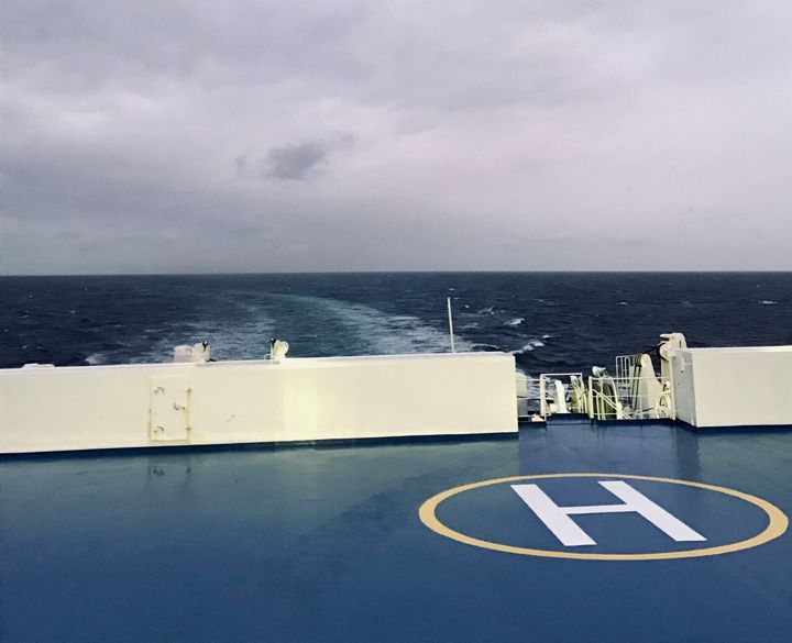 何をしていいかわからないまま、僕はとりあえず甲板に出た。 ⁡ 空はどんより曇っていて、荒波が飛沫を上げていた。 ⁡ 当時喫煙者だった僕は、甲板のベンチに座り、煙草に火をつけた。