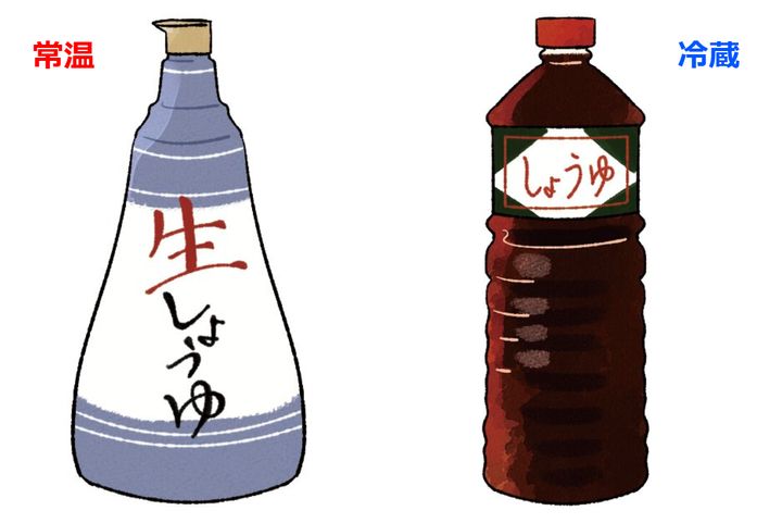 生しょうゆの容器は、しょうゆが空気に触れない二重構造のため開封後も常温で保存。一方でしょうゆは開封すると風味が落ちて色も濃くなるので冷蔵庫へ。
