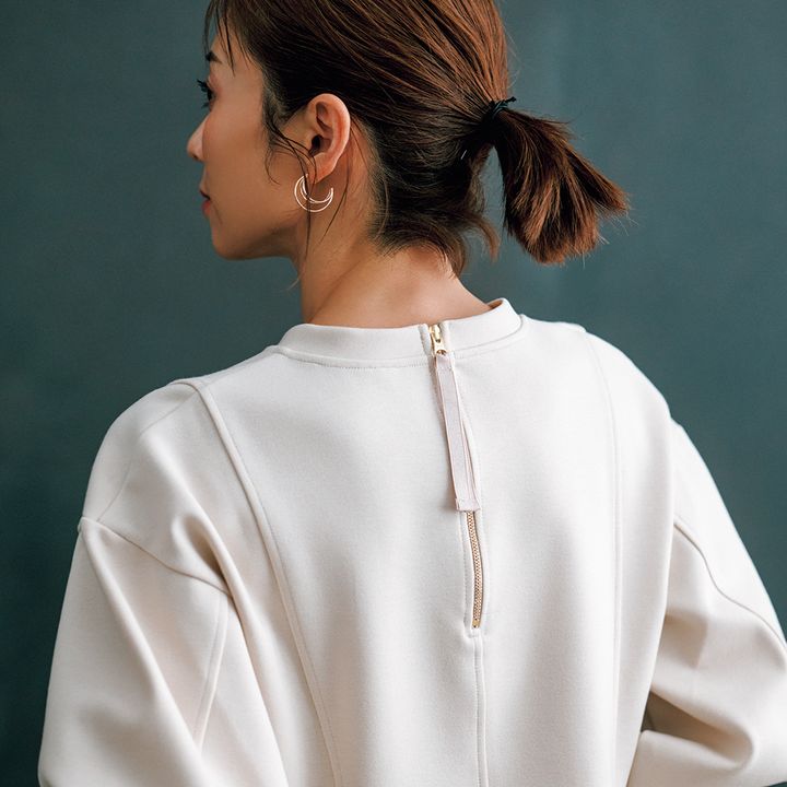 ⑥シーンレスに使える「ポンチペプラムプルオーバー」はケアも楽ちん