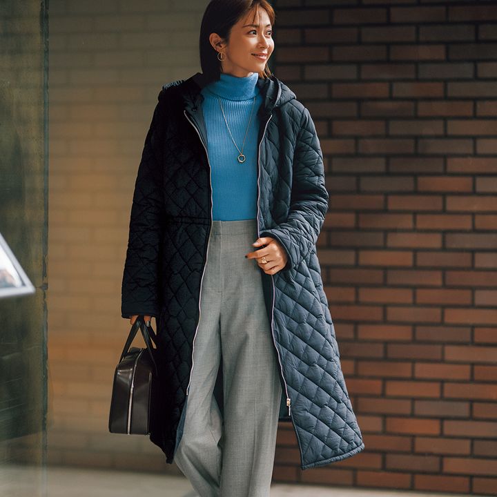 ⑦仕事もOFF時間も対応!万能「キルティングフーディコート」