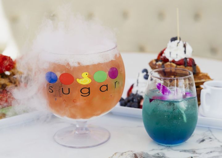 「シュガーファクトリー」のシグネチャーカクテルは、目の前で仕上げてくれる「ゴブレット」。グミやキャンディなどが入った特大サイズのゴブレットグラスにカクテルを注ぐと、もくもく煙が立ち上るんです!こちらはアルコールなしでもオーダーできるので、お子さまと一緒に楽しむことができますね。