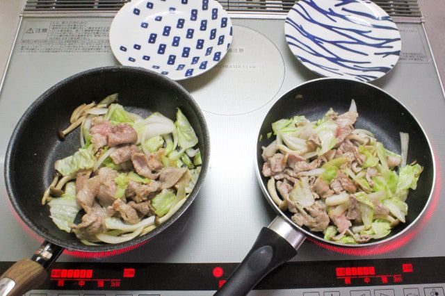 複数の具材を使う料理には、「こま切れ肉」がおすすめとのこと。では、「切り落とし肉」で作ると、おいしさは変わるのでしょうか?まったく同じ材料で、2種類の「野菜炒め」を作ってみます。