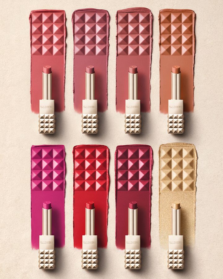 使いやすさと自分らしさの表現をどちらも叶える、美しい発色の13色のカラー。「スパイク ヴァレンティノ」は、メイクアップ界に改めて存在感を示す、ヴァレンティノ ビューティのアイコン的な新作リップスティック。ヴァレンティノ ガラヴァーニのバッグコレクション、ロックスタッズ スパイクからインスピレーションを得たヴァレンティノらしさ溢れるパッケージはもちろん、フォーミュラへの こだわりにおいても象徴的なアイテムに。美しい発色、しっとりと潤い感覚的に満たされるような使用感、そしてクリーミーマットな仕上がり。とろけるようなテクスチャーと心地良さが、唇にのせても長時間持続します。