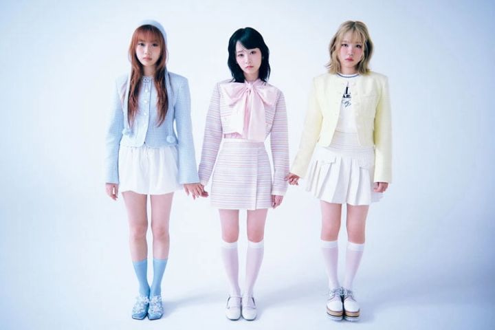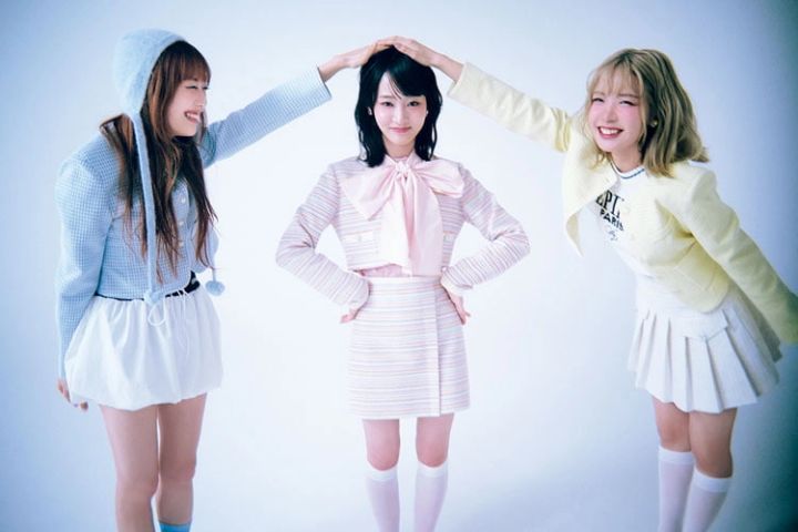 〈左から・KEIKO〉ブルージャケット 26,000円/seooocookie ホワイトバルーンスカート 10,340円/OoH-AHh!(ALAND/アダストリア) ブルーニットボンネット 26,400円/BLANC(H3Oファッションビュロー) クリアキューブネックレス 54,780円/MIKSHIMAI(SHOWROOM CHRMR) フラワークリアサンダル 20,900円/ジェフリー キャンベル(ジェフリー キャンベル ジャパン) その他/スタイリスト私物〈SHIZUKU〉ピンクカットソー 6.017円/SINOON(MUSINSA GLOBAL STORE) ピンクリボンつけえり 6,980円/épine ピンクボーダージャケット 23,000円、ピンクボーダービスチエ 13,000円、ピンクボーダースカート 15,000円/以上seooocookie ホワイトストラップパンプス 9,500円/チャールズ&キース(チャールズ&キース ジャパン) その他/スタイリスト私物 〈TSUZUMI〉ホワイトニット 9,890円/épine イエロージャケット 26,000円/seooocookie シルバー×ホワイトシューズ 19,250円/ジェフリーキャンベル(ジェフリー キャンベル ジャパン) その他/スタイリスト私物